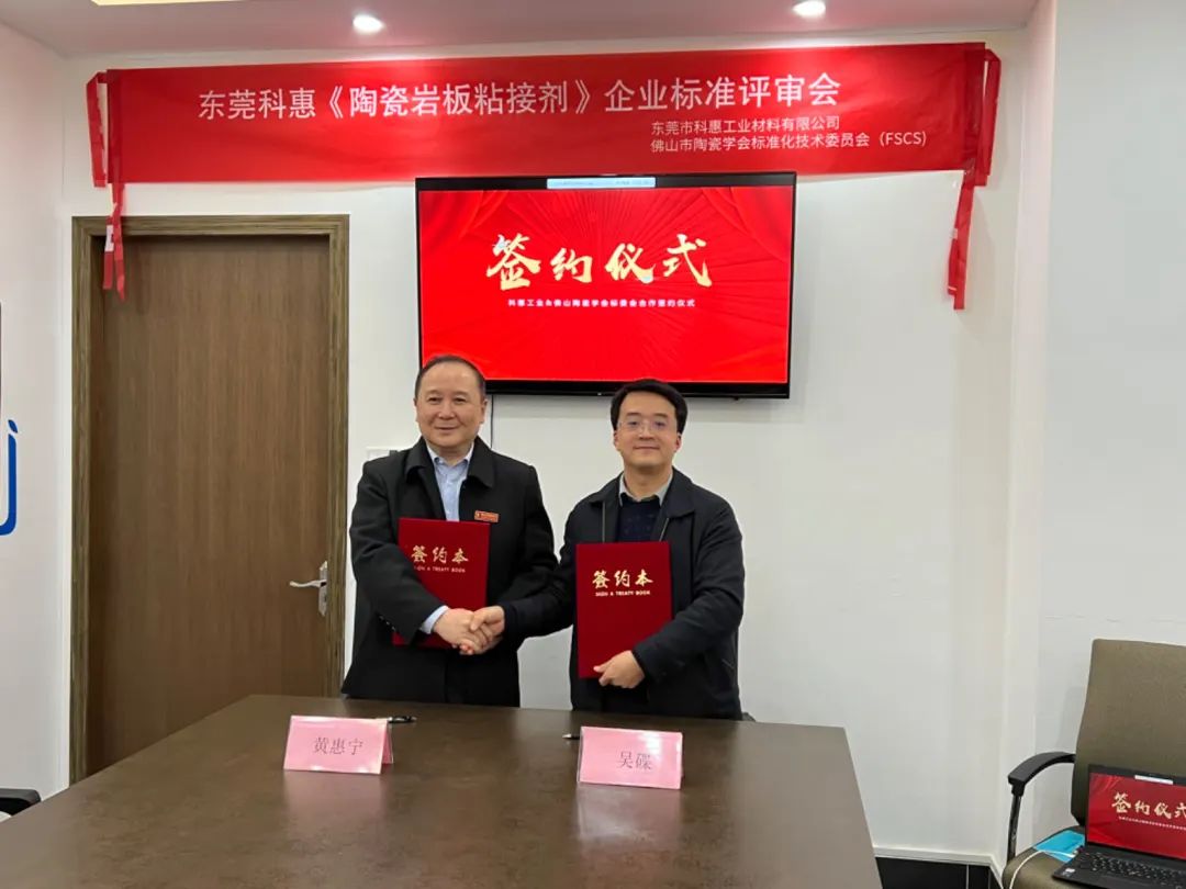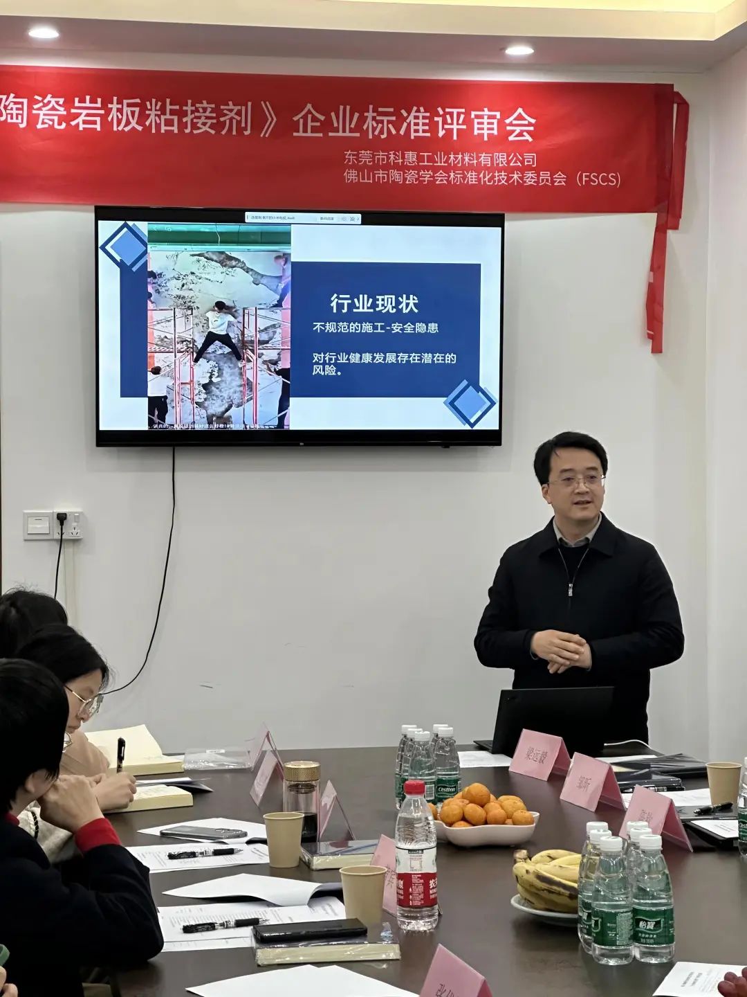 2023年12月27日,佛山市陶瓷学会标准化技术委员组织的东莞市科惠工业材料有限公司《陶瓷岩板粘接剂》企业标准先进性评审会在科惠公司营销中心会议室召开。