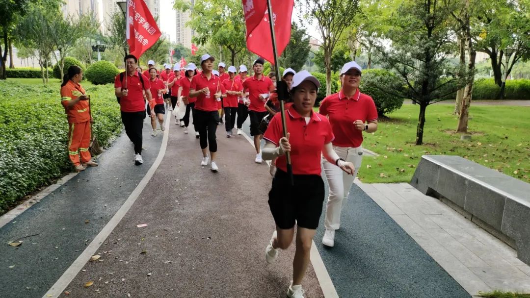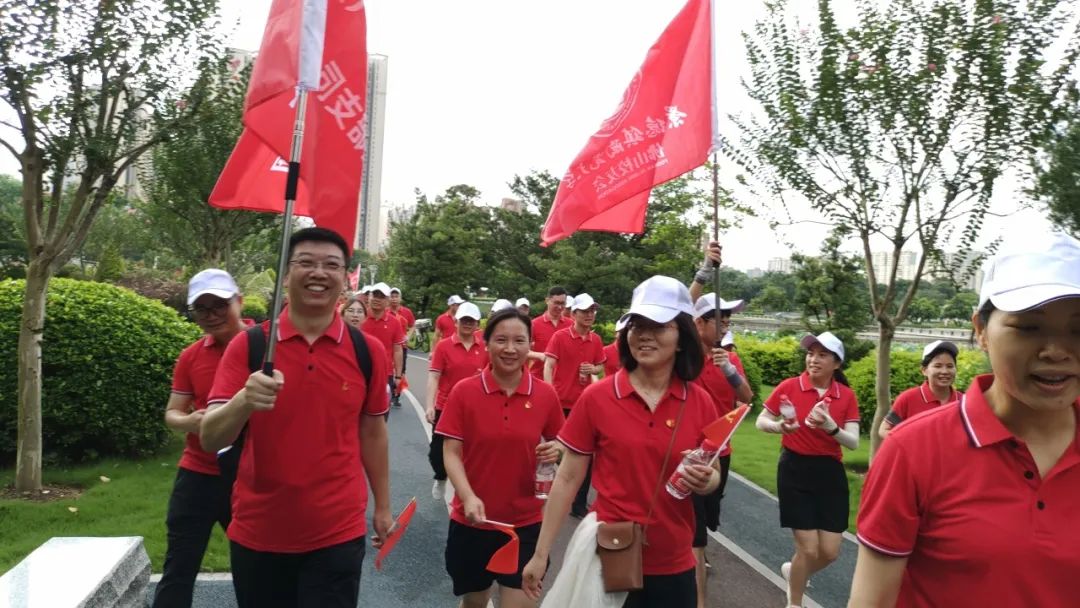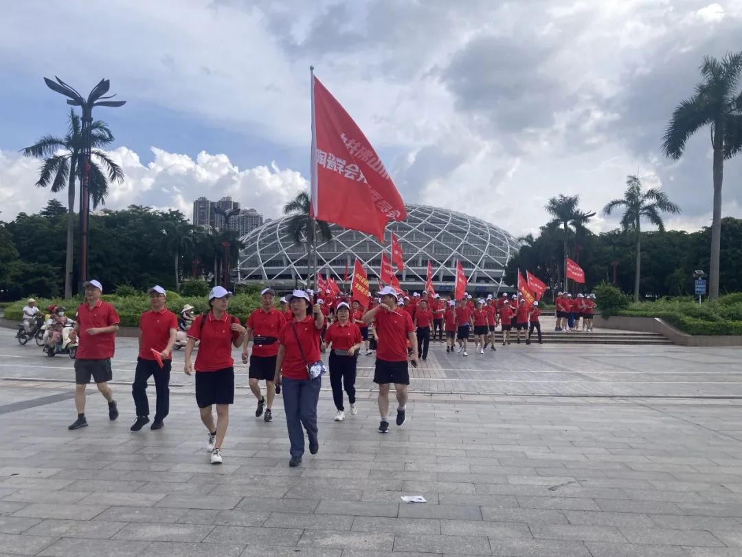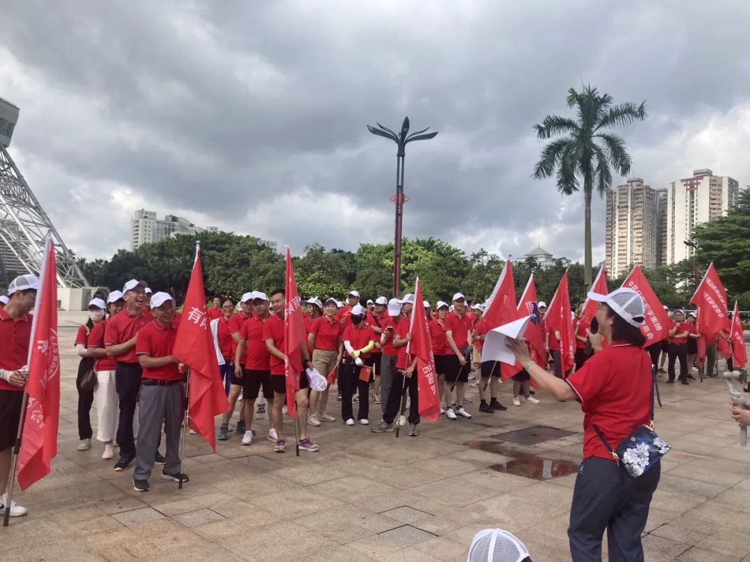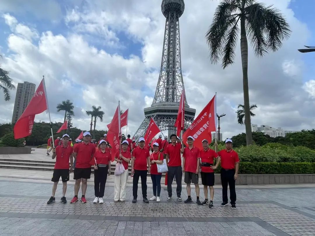 清晨,阳光如金色的绸缎般洒满大地,公园电视塔广场下人头攒动, 参与者们身着统一的红色上衣,仿佛一团团燃烧的火焰,在朝阳的映照下更显精神抖擞,白色的鸭舌帽下,是一张张坚毅而充满朝气的脸庞,20个方阵汇聚成一片红色的海洋。活动启动仪式由陶瓷研究所检测公司党支部书记林珊主持,她深情阐述了本次活动的背景与目的。
