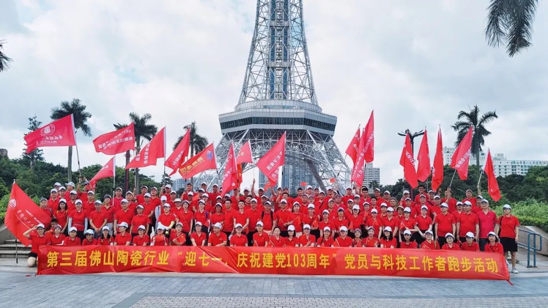 党的光辉照亮征途,党的精神催人奋进。在“七一”党的103岁生日来临之际,为进一步增强党组织的凝聚力和战斗力,弘扬党的优良传统,展示陶瓷行业党员和科技工作者的风采,在佛山市社会组织党委和佛山市科技社团党总支的指导下,6月29日,佛山市陶瓷学会党支部联合陶城报社党支部、市陶瓷行业协会党支部、陶瓷研究所检测公司党支部、东鹏控股党支部和宏宇集团党支部主办的“第三届佛山陶瓷行业迎七一,庆祝建党103周年党员与科技工作者跑步活动”在文华公园盛大举行,以新时代陶瓷人热情活力的精神风貌,致敬百年峥嵘岁月,庆祝建党103周年!